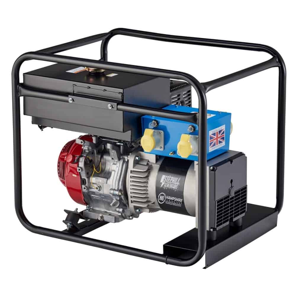 A genuine Honda GX270 powered portable 5.0 kVA petrol generator designed and built in the UK. Rail track and LU approved. The extremely strong and robust design is primarily for industrial and hire markets as well as the regular heavy user. Fitted with a long run 18 L tank, low noise engine and oil alert coupled to a smooth wave form alternator.