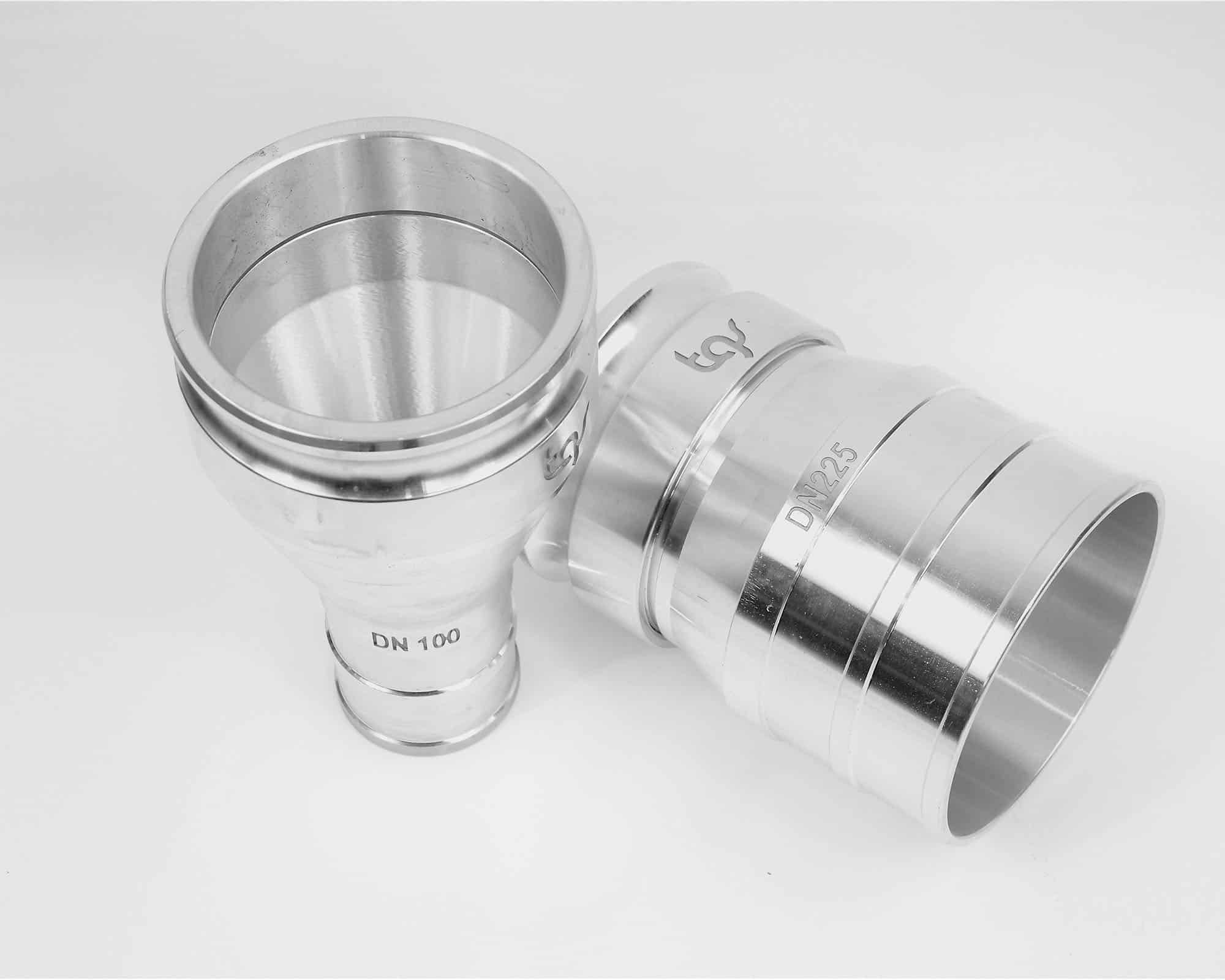 DN100 Inversion Straight Cone with 6″ Camlock fitting made of Aluminium.